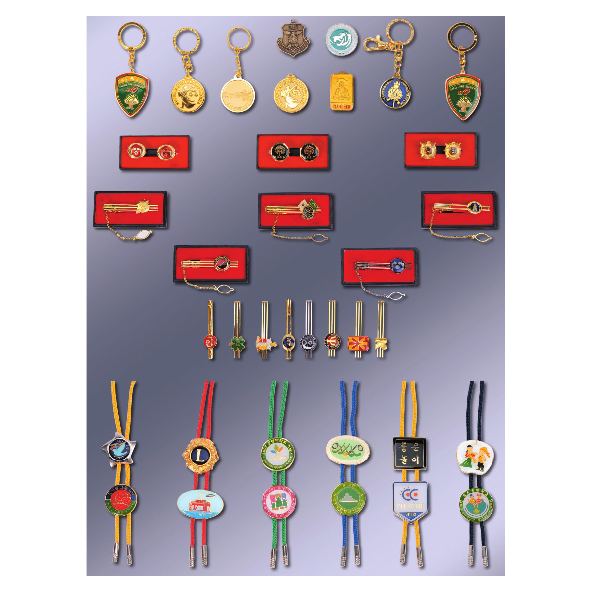 열쇠고리. 넥타이 핀. 링타이