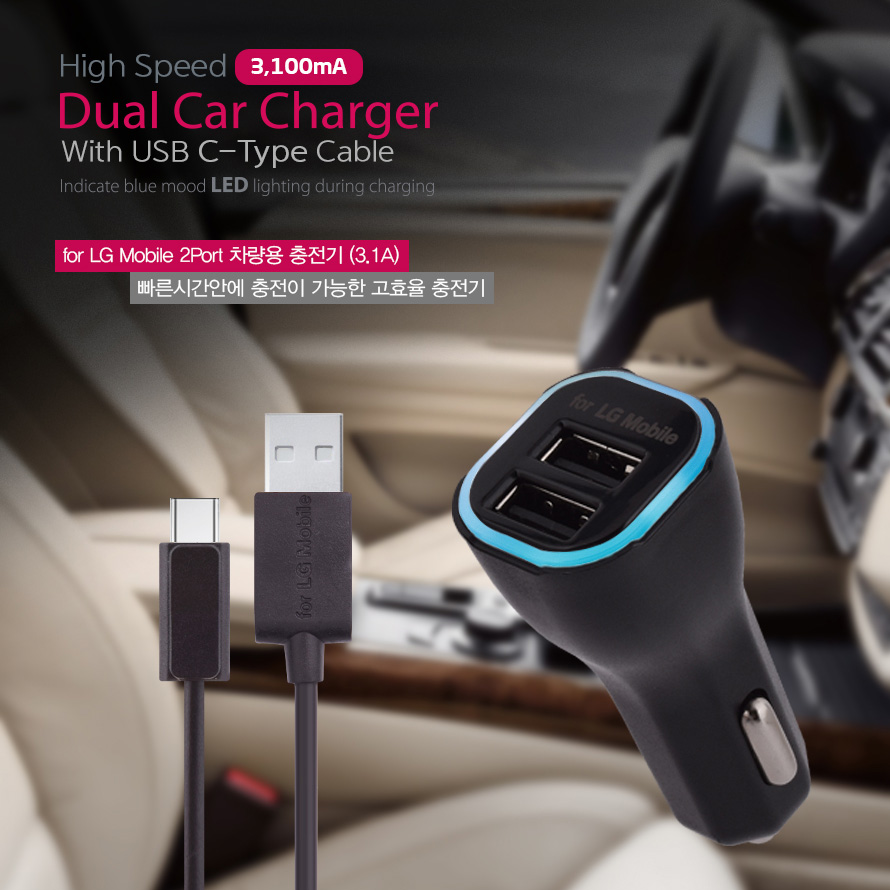 for LG Mobile 차량용 충전기 3.1A C타입 2포트 / 케이블 포함 (TCH-C941 )