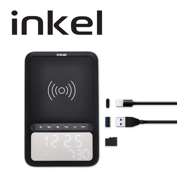 인켈 10W 고속충전 무선거치 시계 스피커 CUBE IK-SP20